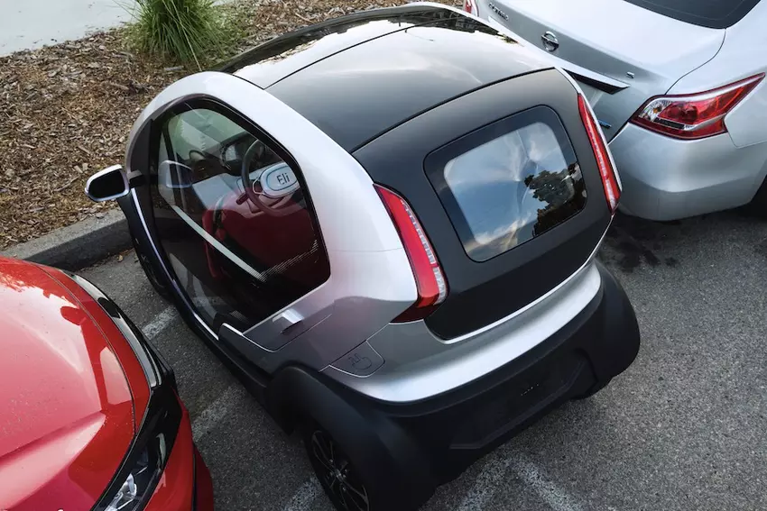 Das Eli Zero Urban Micro Electric Vehicle bietet Platz für zwei Personen. Seine Gesamtabmessungen betragen 2,1 Meter in der Länge, 1,3 Meter in der Breite und 1,5 Meter in der Höhe. Der Innenraum hat ein Fassungsvermögen von 160 Litern. Das Akkupaket hat eine Kapazität von 5,8 kWh, was für eine Strecke von 80 km ausreicht. Das Aufladen erfolgt über eine Haushaltssteckdose und dauert 2,5 Stunden.