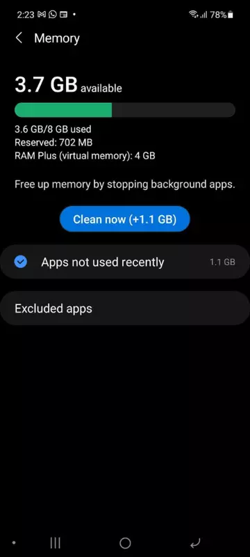 Die wichtigste Systemänderung ist die Funktion RAM Plus. Er erweitert das Smartphone um zusätzliche virtuelle 4 GB RAM. Im Gegensatz zu chinesischen Smartphones, die über eine solche Technologie verfügen, ist es bei Samsung nicht möglich, die Lautstärke zu ändern und die Technologie vollständig zu deaktivieren.