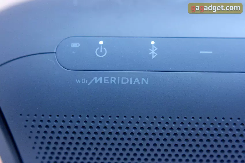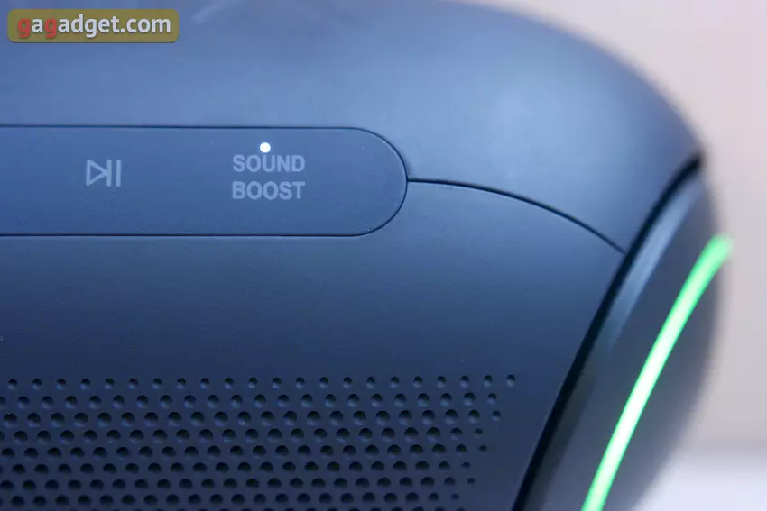 Aufgrund des Aussehens, der gummierten Tasten und Stecker könnte man annehmen, dass die Lautsprecher fast unter Wasser gehört werden können. Dies ist jedoch nicht der Fall - der garantierte Schutzgrad beträgt nur IPX5. Das reicht jedoch völlig aus, um den Redner vor dem Regen zu schützen, der plötzlich über die Gruppe hereinbrach.