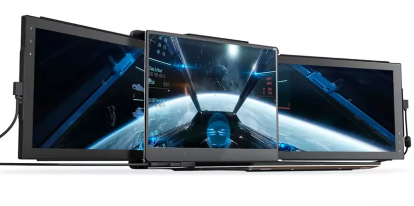 Mobile Pixels hat jetzt insgesamt drei Modelle dieser tragbaren Monitore. Neben dem DUEX Plus gibt es auch das DUEX Lite, das eine kleinere 12,5-Zoll-Diagonale und einen einzelnen USB-C-Anschluss hat. Und dann gibt es noch das Uber-Gerät DUEX Trio mit zwei Bildschirmen. Er ist in drei Versionen erhältlich: 12,5" Diagonale (das eigentliche Trio) und 14" (Trio Max). Allerdings bietet die Website auch Laptop-Versionen mit 15"-16" und 17,3" Diagonale an. Da die Fähigkeiten der eingebauten Macbook-Grafikkarte aber nicht unbegrenzt sind, sinkt die Auflösung des Hauptbildschirms in diesem Fall von 3360x2100 auf 1786x1226.
