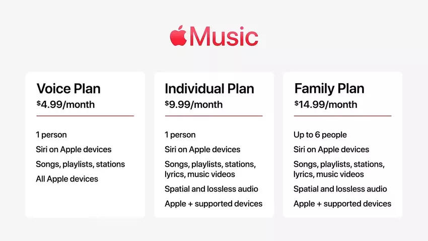 Der Plan heißt "Voice Plan" und erlaubt laut Apple nur die Steuerung der Musik über den Sprachassistenten Siri. Außerdem unterstützt es keinen Lossless- und Surround-Sound mit Dolby Audio. Natürlich kann nur eine Person einen solchen Plan nutzen. Im Wesentlichen ist Voice Plan für diejenigen, die es bevorzugen, Musik über
