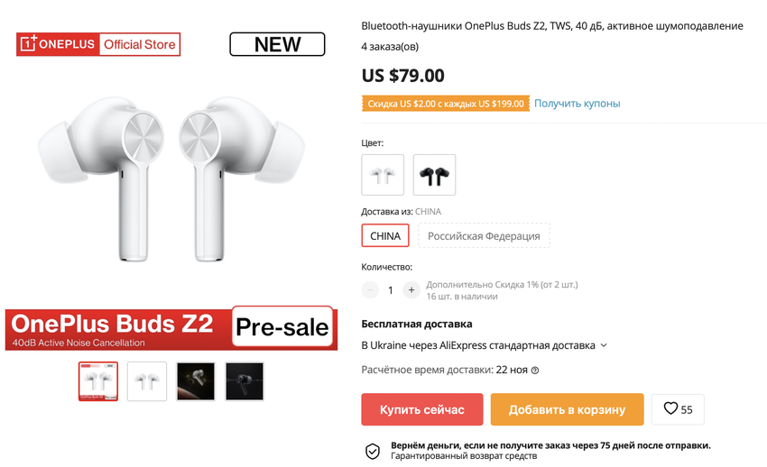 Der Preis der Neuheit beträgt $79. Interessanterweise ist dies buchstäblich 2 Dollar mehr als der offizielle Preis in China. Der Verkäufer hat die Farben Schwarz und Weiß auf Lager, allerdings ist die Anzahl der Kopfhörer begrenzt.