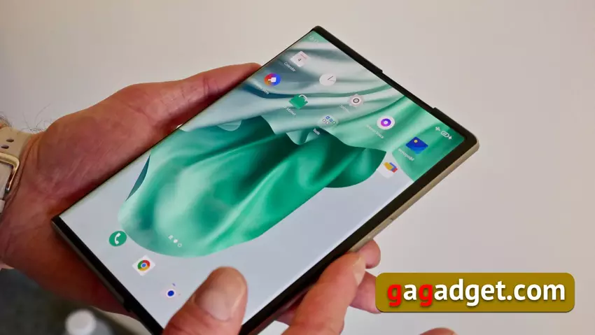 Es ist erwähnenswert, dass es sich beim OPPO X 2021 um ein Konzept im Stadium eines funktionierenden Prototyps handelt, der nicht für die Serienproduktion, sondern für Demonstrationszwecke bestimmt ist. Daher ist es sinnlos, eine ganze Reihe von Merkmalen wie Prozessorspezifikationen, Kamera und Android-Version auf das Gerät anzuwenden. Es sieht recht anständig aus und ähnelt in seinem Nutzungsszenario dem Galaxy Fold, das sich von einem Smartphone in ein Mini-Tablet verwandelt.