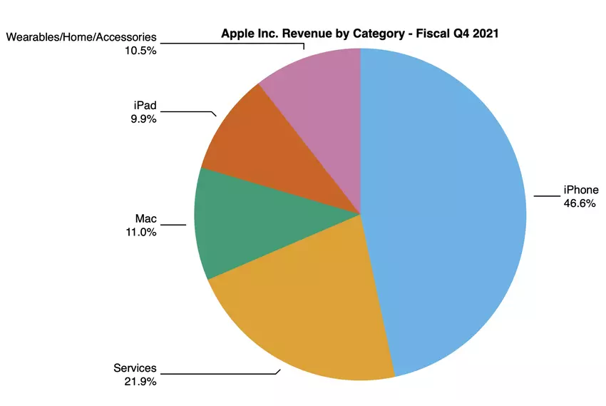 Für das gesamte Geschäftsjahr hat Apple seine eigenen Rekorde gebrochen und Produkte im Wert von 365,8 Milliarden US-Dollar verkauft und einen Nettogewinn von 94,7 Milliarden US-Dollar erwirtschaftet, verglichen mit 274,5 Milliarden US-Dollar Umsatz und 57,4 Milliarden US-Dollar Nettogewinn im Geschäftsjahr 2020.
