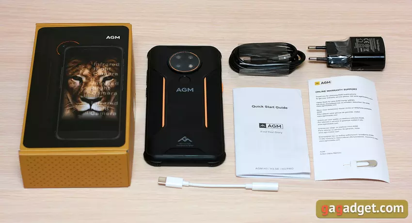 Ein Smartphone mit Nachtsichtkamera ist an und für sich schon ein Gimmick, und für zweihundert Dollar erst recht. Wo ist der Haken? Bei der Kamera selbst handelt es sich natürlich nicht um eine Wärmebildkamera, sondern um einen einfachen IR-Strahler (der in Smartphones nicht weniger selten ist). Ansonsten sieht das AGM H3 wie ein typisches robustes Budget-Handy aus. Gut geschützt: Zusätzlich zu der bei Smartphones bereits weit verbreiteten Schutzart IP68 erfüllt es die Anforderungen von IP69K und MIL-STD-810H. Aber es ist auch budgetfreundlich: ein 5,7-Zoll-HD-Display, ein winziger MTK6762-Prozessor und das einzige Paket mit 4 GB RAM und 64 GB Speicher. Wenn Sie auf der Suche nach einem preiswerten, aber robusten Smartphone sind, mit dem Sie auch bei völliger Dunkelheit (wenn auch bewölkt und in Schwarzweiß) fotografieren können, dann können Sie es getrost nehmen. Wenn Sie auf der Suche nach einem sicheren "Batterie-Handy" sind, dann ist es nicht hier, aber wenn Sie Zweifel haben, lesen Sie weiter, ich werde Ihnen alles im Detail erzählen.
