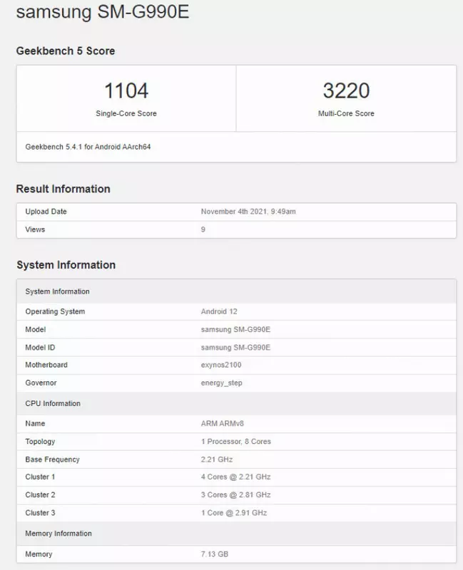 Samsung Galaxy S21 FE angetrieben von Exynos 2100 und Android 12 im Geekbench 5 getestet