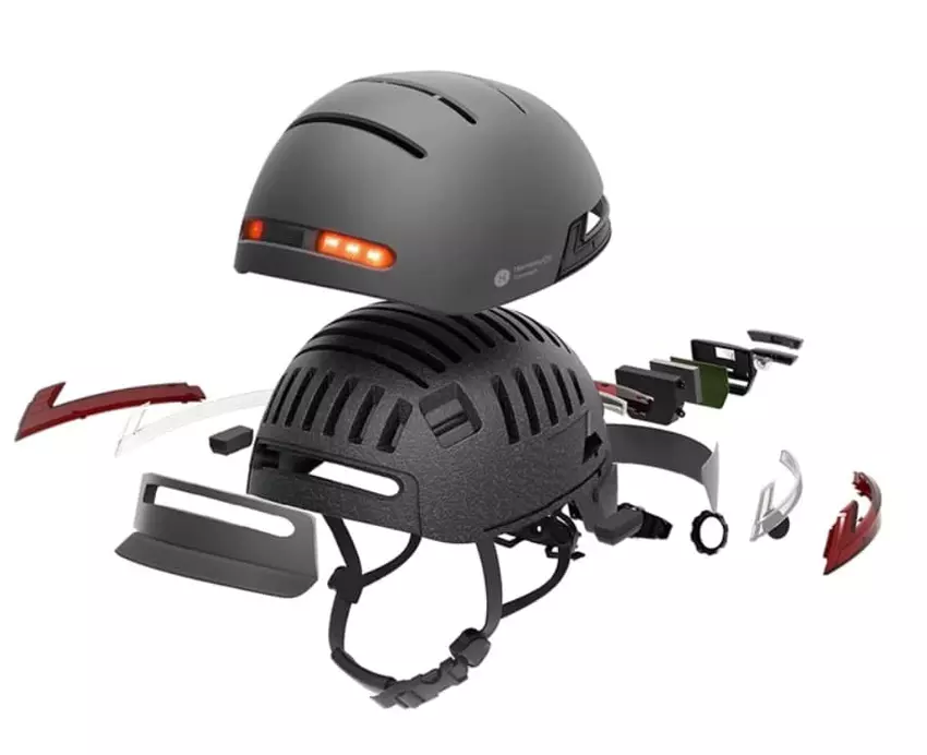 Die Vorder- und Rückseite des Helms ist außerdem mit einer LED-Beleuchtung ausgestattet, die besonders auf stark befahrenen Straßen und in dunklen Zeiten nützlich ist. Und der eingebaute Schwerkraft-Beschleunigungssensor erkennt das Abbremsen, d.h. die LED leuchtet auf, wenn Sie langsamer werden und signalisiert das Abbiegen.