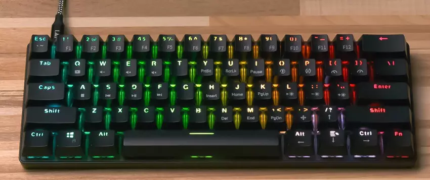Eine mechanische Tastatur mit RGB-Schalter und proprietärer Anpassungssoftware. Unterstützt 10 Beleuchtungsarten. Das Gehäuse der Tastatur ist gegen versehentliches Verschütten von Flüssigkeiten geschützt. USB-Anschluss ist Standard (USB 2.0/USB 3.0 unterstützt), Treiber werden automatisch installiert. Die kompakte Größe spart zusätzlichen Platz auf Ihrem Schreibtisch. Die Tastatur hat ein gutes Tastenfeedback mit mittlerem Klickgeräusch bei braunen Schaltern. Das gesamte Erscheinungsbild und die Haptik sind beeindruckend: Es sieht aus wie eine teure Tastatur, für die man sich nicht schämen muss.