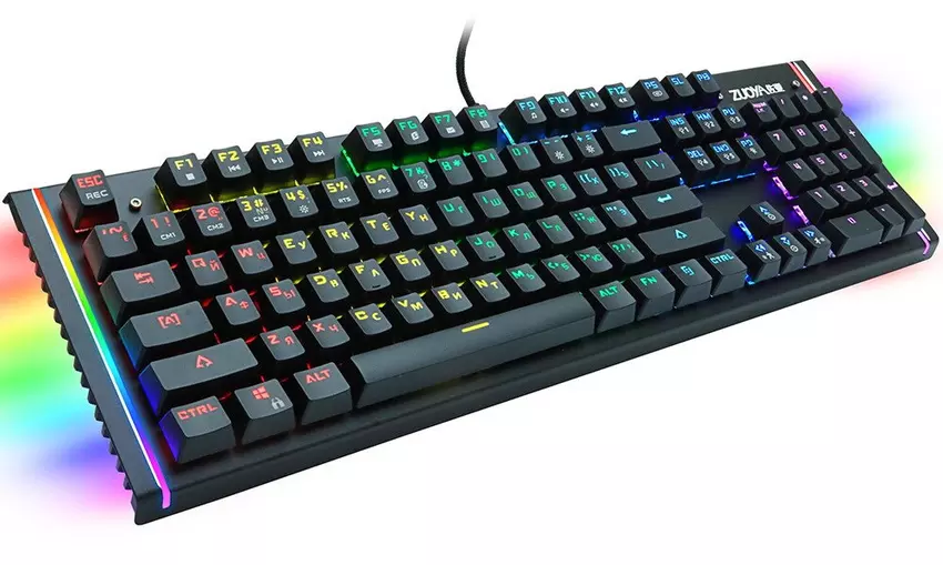 Verkabelte RGB-hintergrundbeleuchtete Gaming-Tastatur 87/104 Tasten mit blauen und roten Schaltern. Russisches Layout. Hintergrundbeleuchtung in drei Varianten: MIX Light (Helligkeit kann verändert werden, aber die Farbe der Hintergrundbeleuchtung bleibt gleich), RGB Light (14 Modi für Helligkeit und Farbeffekte) und X61 Light (alle Vorteile der vorherigen Variante plus leuchtende LED-Streifen an den Seiten). Ergonomisches Design. Die Möglichkeit, ihre Layouts für ihre Lieblingsspiele zu programmieren. Manche Menschen vermissen jedoch den Nummernblock. In den Rezensionen erwähnen die Nutzer, dass die blauen Schalter ziemlich laut sind, aber sie haben einen schönen Touch - wie bei einer alten Schreibmaschine.