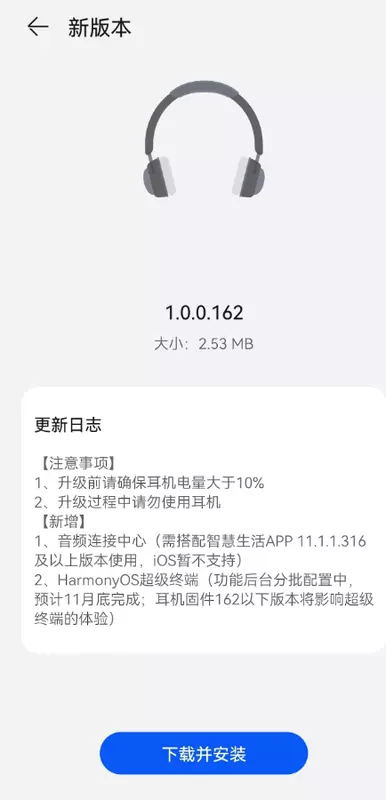 Firmware kam mit Build-Nummer heraus 1.0.0.162 und zwei nützliche Neuerungen wurden hinzugefügt. Das erste ist das Audioverbindungszentrum. Es funktioniert im Tandem mit der AI Life 11.1.1.316 App und bisher nur auf Android-Geräten. Die zweite Neuerung ist die Unterstützung der HarmonyOS Super Device-Funktion. Damit können Sie den Kopfhörer nicht nur von Ihrem Smartphone aus steuern, sondern auch von anderen Geräten, die auf dem HarmonyOS-Betriebssystem basieren.