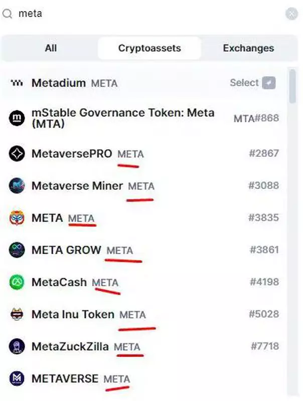 Betrüger entschieden sich für die Umbenennung von Facebook in Meta, die begannen, massiv Kryptowährungen mit der Abkürzung META zu erstellen.