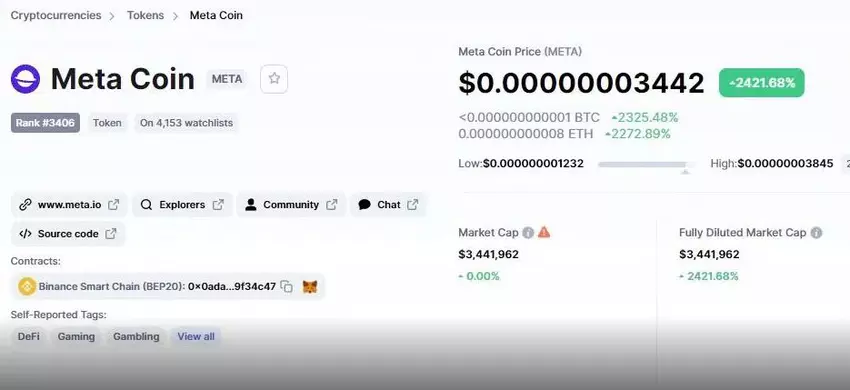 Betrüger erstellen massiv META-Kryptowährungen, was auf eine Verbindung mit Meta (ehemals Facebook) hindeutet.