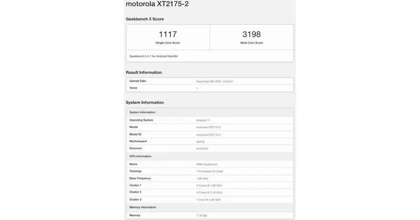 In der Software-Datenbank von Geekbench 5 leuchtete das Flaggschiff-Smartphone Motorola Edge S30, das mit einem Snapdragon 888+ Mobilprozessor ausgestattet ist.