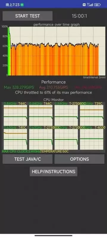 Journalisten schreiben, dass das Smartphone beim Starten schwerer Spiele zunächst stabil 60 Bilder pro Sekunde hält, aber nach 15-30 Minuten kommt es zu Drawdowns. Die durchschnittliche Bildrate beträgt je nach Spiel 51-53 Bilder pro Sekunde und die Gehäusetemperatur liegt bei 43-44,4 °C.