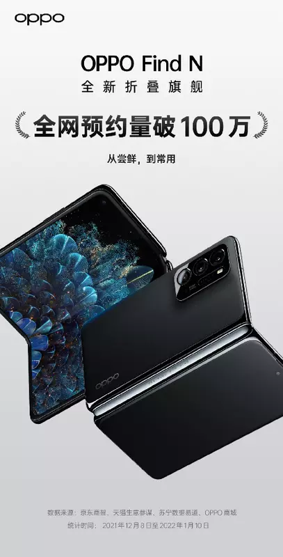 Die erste Charge des Geräts in 5 Minuten zerlegt und jetzt ist es unmöglich, eine Neuheit zu kaufen, aber trotzdem hat sich bereits eine Warteschlange für das Gerät gebildet - mehr als 1 Million Menschen. Das heißt natürlich nicht, dass all diese Leute irgendwann ein Smartphone kaufen werden, aber die Zahl ist trotzdem beeindruckend. Zum Vergleich: Samsung verkauft 1 Million Smartphones Galaxy Z Fold 3 und Galaxy Z Flip 3 (ja, zusammengestellt) einige Monate nach Verkaufsstart. OPPO Find N wiederum ist erst im Dezember auf den Markt gekommen.
