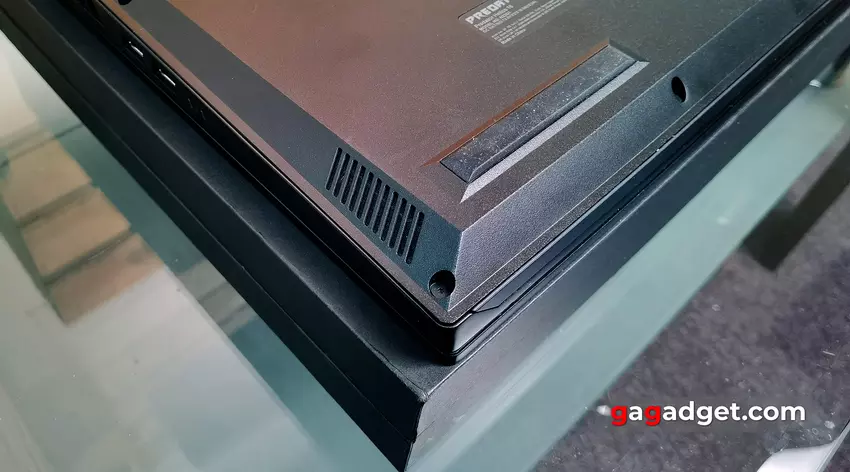 Das Acer Predator Helios 16 ist ein Notebook, das eher als Desktop-Ersatz denn als portable Lösung gedacht ist. Daher sind die recht großen Abmessungen von 357,8 x 278,7 x 26,9 x 1,9 mm und das Gewicht von 2,9 kg durchaus zu erwarten. Es wird nicht sehr bequem sein, ein solches Notebook jeden Tag mit ins Büro zu nehmen. Die Qualität der Materialien und des Zusammenbaus ist sehr gut. Die Panels biegen sich nicht zu sehr durch, trotz der großen linearen Abmessungen. Das einzige, was mir nicht gefallen hat, war das Knacken der Scharniere. Obwohl dies nach den vielen Bewertungen vielleicht ein Merkmal des Musters ist.
