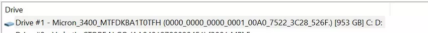 Das Notebook verfügt über zwei M.2-Laufwerksschächte, die jeweils Laufwerke bis zu 1 TB unterstützen. Es gibt Unterstützung für RAID0, wodurch Sie bei der Verwendung von zwei Laufwerken deutlich höhere Geschwindigkeiten erzielen können. In der getesteten Konfiguration haben wir eine schnelle NVMe-SSD Micron 3400 im M.2-Format mit PCIe 4.0 x4-Schnittstelle für 1 TB.