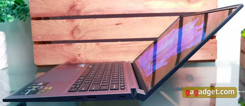 Acer Swift X 14 verwendet einen vierzelligen 76-Wh-Akku. Und hier machen sich die leistungsfähigen Komponenten (vor allem der Intel H-Series Prozessor) bemerkbar. Im normalen Büromodus mit einer konstanten Wi-Fi-Verbindung, der Nutzung eines Browsers, einfacher Fotobearbeitung in Photoshop und der Arbeit mit Dokumenten bei 50 % Helligkeit hält das Notebook etwas mehr als 5 Stunden durch. Wenn also die Autonomie das Hauptkriterium für die Wahl eines Laptops ist, dann sollten Sie sich Modelle mit bescheideneren Prozessoren der U-Serie genauer ansehen. Aber natürlich ist die Leistung dann auf einem ganz anderen Niveau.