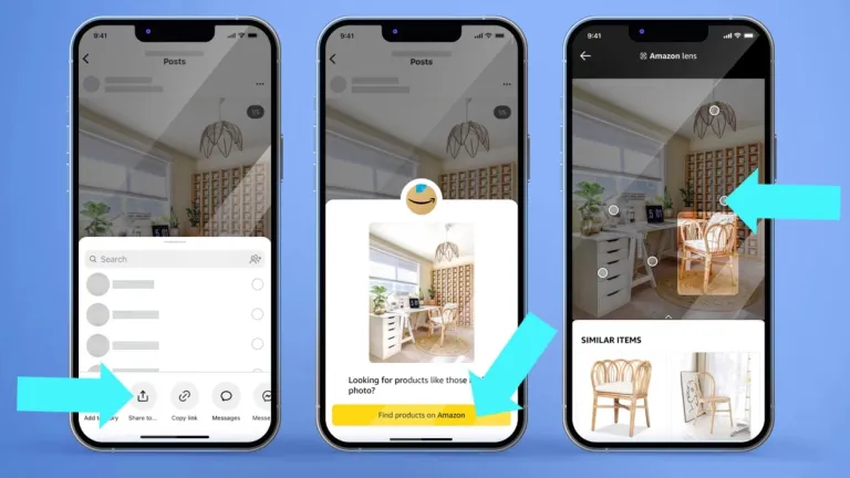 Das Find-on-Amazon-Tool ähnelt den Lösungen von Google und Pinterest und ermöglicht die Suche nach Artikeln auf der Grundlage eines Fotos aus dem Internet, sozialen Medien oder E-Mails. Es ermöglicht die Suche nach visuell ähnlichen Gegenständen, auch wenn der Nutzer deren Namen nicht kennt.