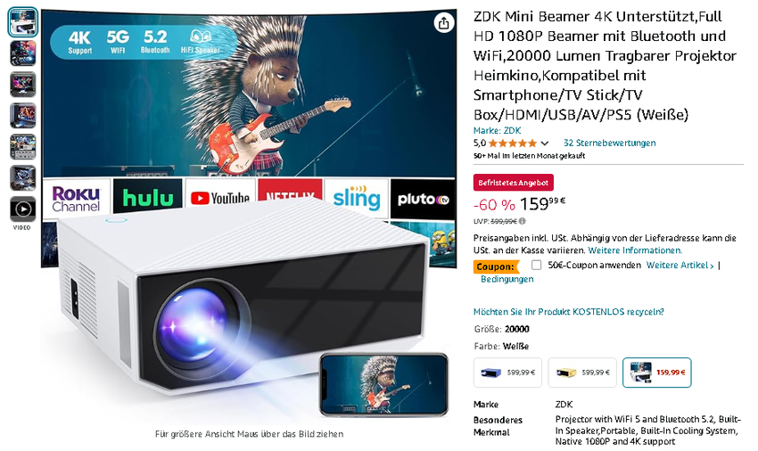 ZDK Mini Beamer 4K - Ihr mobiles Heimkino