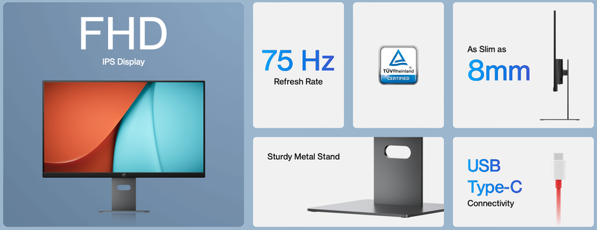 OnePlus Monitor E: 24-Zoll-Monitor mit IPS FHD 75 Hz-Bildschirm und einem USB-C-Anschluss mit 18 W Power Delivery