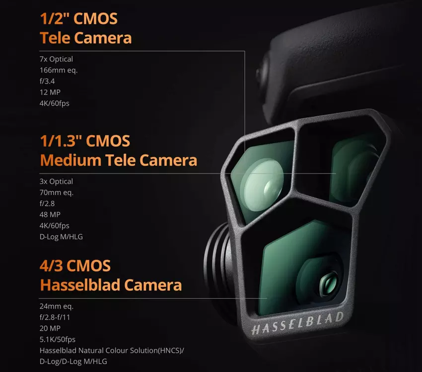 DJI Mavic 3 Pro - Hasselblad 48 MP + 20 MP + 12 MP Kamera, 5.1K Unterstützung, Apple ProRes und Flugzeit von bis zu 43 Minuten ab $2199