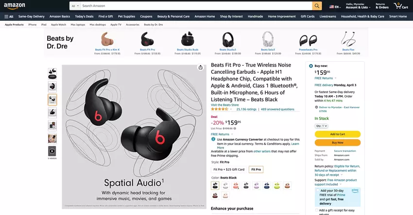 $40 Rabatt: Beats Fit Pro mit ANC, IPX4-Schutz und AirPods Pro-ähnlichem Chip im Angebot bei Amazon für $159