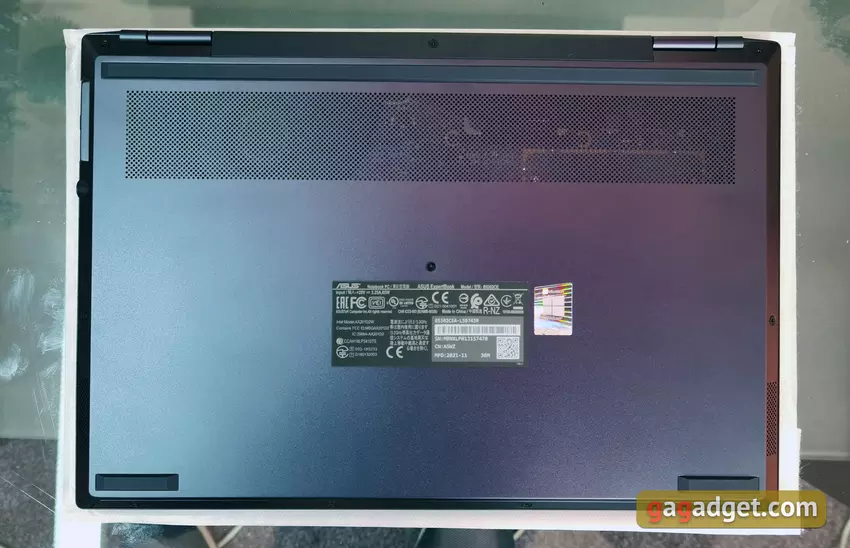 Der ASUS ExpertBook B5 (B5302CE) Laptop erfüllt die Zertifizierungsanforderungen des Intel Evo Programms. Kurz gesagt, umfassendiese Anforderungen eineAkkulaufzeit von mindestens 9 Stunden, Unterstützung für schnelles Aufladen, eine Bildschirmauflösung von mindestens FullHD, Unterstützung für Wi-Fi 6 und Thunderbolt 4. Das ASUS ExpertBook B5 (B5302CE) ist mit Intel Tiger Lake Core i5 und i7 Prozessoren der 11. Unsere Konfiguration verwendet den bereits bekannten Intel Core i7-1165G7 Prozessor. Dabei handelt es sich um einen Quad-Core-Acht-Thread-10nm-SuperFin-Prozessor mit einer Basisfrequenz von 1,2 bis 2,8 GHz je nach TDP. Im Turbo-Boost-Modus kann die Frequenz 4,7 GHz erreichen. Der TDP beträgt bis zu 28 Watt. Eingebauter Grafikbeschleuniger - Intel Iris Xe, hat 96 Ausführungseinheiten, die maximale Frequenz kann 1300 MHz erreichen. Es gibt keine diskrete Grafik, die offensichtlich ist, angesichts der Klasse des Laptops. RAM - 16 GB DDR4-3200 MHz sind auf der Platine verlötet. Es gibt einen freien SO-DIMM-Steckplatz für RAM, insgesamt werden bis zu 48 GB unterstützt. Drahtlose Schnittstellen: Wi-Fi 802.11 ax (Wi-Fi 6) und Bluetooth 5.0.