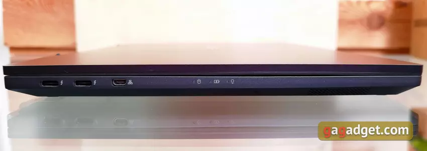 Auf der linken Seite befinden sich zwei Type-C Thunderbolt 4 mit Power Delivery und DisplayPort-Unterstützung, LEDs und Micro HDMI to LAN mit einer festen MAC-Adresse für eine einfache Verwaltung in Unternehmensnetzwerken: