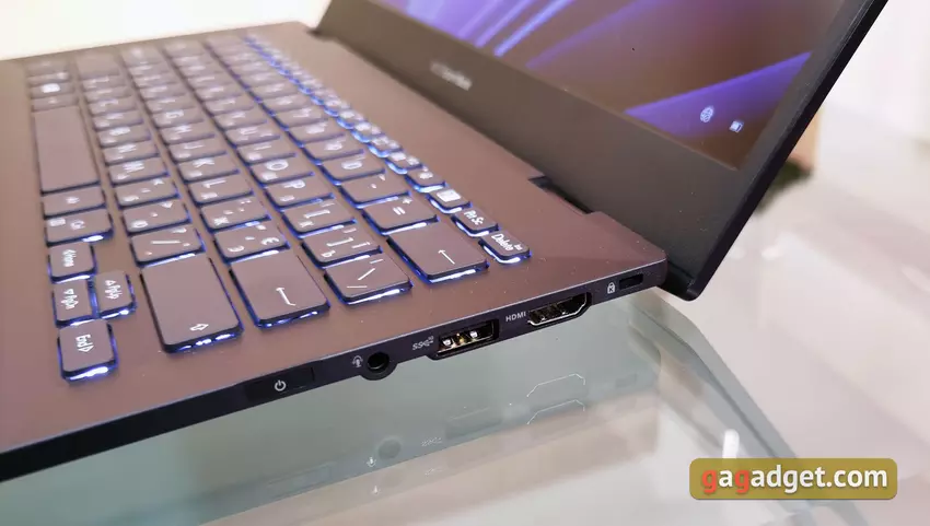 Die Abmessungen und das Layout der Tastatur sind absolut standardmäßig für ultraportable Modelle: ohne zusätzlichen Ziffernblock, mit reduzierten Pfeilen und einer Reihe von Funktionstasten, die mit der Entf-Taste endet (nicht mit dem Power-Button, wie es bei einigen Modellen der Fall ist). Home, End, PgUp und PgDn sind mit Pfeilen durch Fn dupliziert. Beide Umschalttasten sind lang, Enter ist "einstöckig". Im Allgemeinen wird es also ein Minimum an Zeit brauchen, um sich daran zu gewöhnen.