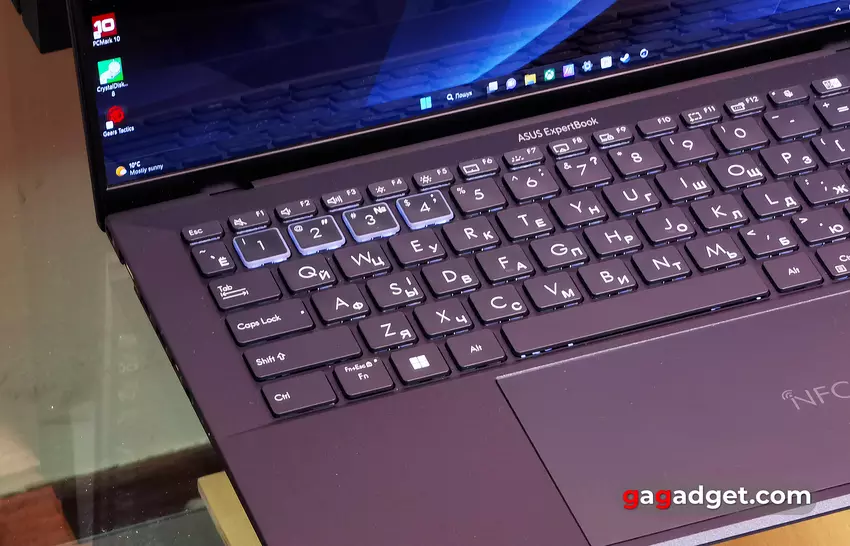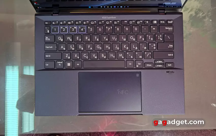 Das ASUS ExpertBook B9 OLED verfügt über ein großes Glas-Touchpad. Es hat eine hervorragende Empfindlichkeit und Positionierungsgenauigkeit. Es reicht für alle Standard-Büroaufgaben und grundlegende Fotobearbeitung aus. Das Touchpad verfügt auch über eine integrierte Touch-Version des optionalen numerischen Tastenfelds NumberPad, eine ähnliche Lösung, die wir bereits in einigen ASUS Ultrabooks gesehen haben.