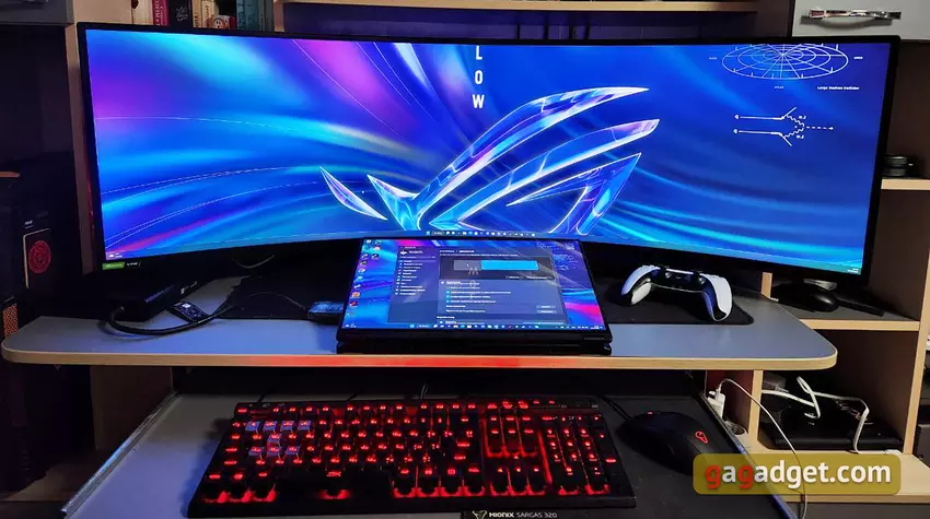 Interessanter ist die Situation bei den Grafikbeschleunigern. Es gibt eine integrierte AMD Radeon 680M Grafik, die für anspruchslose Aufgaben und Akkulaufzeit verwendet wird. Das Notebook hat auch eine diskrete NVIDIA GeForce RTX 3070 Ti Grafikkarte (mobile Version) mit 8 GB GDDR6 Speicher, TDP 125 W und ROG Boost 1085 MHz (1035 MHz Boost Frequenz + 50 MHz Übertaktung, 100 W + 25 W mit Dynamic Boost Technologie). Das Notebook verfügt außerdem über einen MUX-Switch-Multiplexer, der es Ihnen ermöglicht, eine diskrete Grafikkarte direkt an das Display anzuschließen, anstatt über eine integrierte Karte. Dies reduziert die Latenzzeit und erhöht die Leistung. Und im Inneren des ROG XG Mobile befindet sich die mobile Version der AMD Radeon RX 6850 XT. Die Grafikkarte basiert auf der RDNA2-Architektur und wird in einer 7nm-Prozesstechnologie hergestellt. Sie enthält 40 Recheneinheiten, 64 Rasterisierungseinheiten und 2560 Stream-Prozessoren. Die Basisfrequenz beträgt 2454 MHz, mit einem Boost von bis zu 2598 MHz. Es ist mit 12 GB GDDR6-Videospeicher ausgestattet, TGP - bis zu 165 W (ROG Boost).