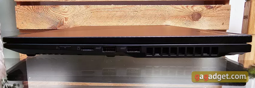 Das ROG XG Mobile ist eine vollwertige Dockingstation mit einer Reihe von sehr nützlichen zusätzlichen Anschlüssen. Dank dieser können Sie absolut alles anschließen, was Sie brauchen. Es gibt vier Full-Size-USB 3.2 Gen1, HDMI 2.1 und DisplayPort 1.4 mit G-Sync-Unterstützung für den Anschluss eines Monitors, einen RJ-45-Netzwerkanschluss (Gigabit Lan 10/100/1000 Mbps), einen Kartenleser für Standard-SD UHS-II (312MB/s) und eine Buchse für ein Stromkabel. Das eingebaute Netzteil hat eine Leistung von 330W, was sowohl für die Grafikkarte als auch für das Notebook ausreicht.