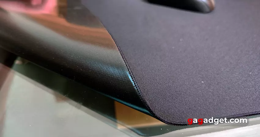 Die Oberfläche besteht aus einem Hybridgewebe mit einer wasser-, öl- und staubabweisenden Beschichtung. Sie hat eine sehr feine Textur und die Maus gleitet perfekt darauf. Die Standardstärkebeträgt 3 mm, und die Unterseite bestehtaus weichem, hochdichtem Polyurethanschaum mit Memory-Effekt. Sie klebt buchstäblich auf der Tischoberfläche und ist sehr sicher in der gewünschten Position fixiert. Sie müssen ihn buchstäblich vom Tisch abreißen, um die Position zu ändern.