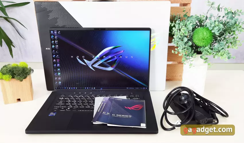 ASUS ROG Zephyrus M16 ist mit Top-End 11. Generation Intel Core i7 oder i9 Tiger Lake Prozessoren in verschiedenen Konfigurationen konfiguriert. In unserer Konfiguration war Intel Core i9-11900Heingestellt . Dies ist ein 8-Kern-Prozessor mit Unterstützung für Hyper Threading 16 Threads, die auf einem 10nm SuperFin-Prozess-Technologie hergestellt wird. Die Basistaktfrequenz beträgt 2,5 GHz, die Maximalfrequenz bis zu 4,9 GHz, der Third-Level-Cache 24 MB und der TDP 45 W. Es gibt eine integrierte UHD-Intel-Grafik mit einer Basisfrequenz von 350 MHz und einer Maximalfrequenz von 1,45 GHz, die für anspruchslose Aufgaben und im Akkubetrieb verwendet wird. Als diskrete Grafik ist die NVIDIA GeForce RTX 3070 Laptop mit einer Frequenz von bis zu 1390 MHz (ROG Boost bei 80 W) installiert, Boost bis zu 100 W wird unterstützt. Die Größe des Videospeichers beträgt 8 GB GDDR6. Der Arbeitsspeicher in unserer Konfiguration beträgt 32 GB DDR4-3200. Davon befinden sich 16 GB auf dem Motherboard und weitere 16 GB in einem Steckplatz. Der maximal unterstützte Arbeitsspeicher beträgt 48 GB. Drahtlose Schnittstellen: Wi-Fi 6 (802.11ax) und Bluetooth 5.2 (Dualband).
