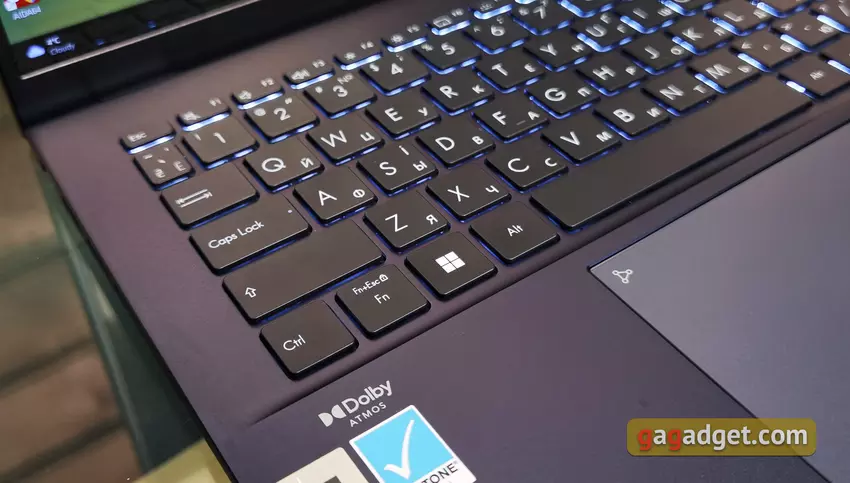 Der Abstand zwischen den Tasten beträgt 19,05 mm, die Oberfläche ist um 0,2 mm konkav und der volle Hub beträgt 1,4 mm. Die Bedienung ist sehr komfortabel und angenehm, und die Tasten sind gut spürbar. Der gesamte Bericht wurde auf diesem Notebook gedruckt. Es gibt eine weiße Hintergrundbeleuchtung mit drei Helligkeitsstufen.