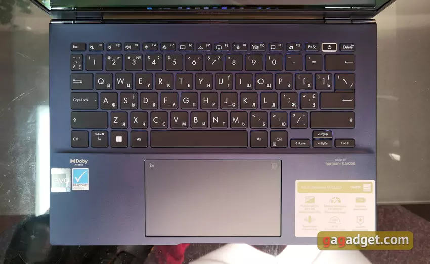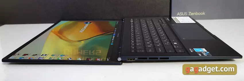 In früheren Testberichten haben wir wiederholt über das Intel Evo-Zertifizierungsprogramm gesprochen. Der Laptopmuss eine Reihe von Bedingungen erfüllen: eine Bildschirmauflösung von mindestens FullHD, Unterstützung für schnelles Laden, 9 Stunden Akkulaufzeit, Wi-Fi 6-Unterstützung und Thunderbolt 4. Nach Angaben von ASUS erfüllt das ASUS Zenbook 14 OLED (UX3402) diese Bedingungen. Ab der 12. Generation haben die mobilen Prozessoren von Intel eine neue P-Linie, zusätzlich zu den üblichen U und H/HX. Mit dem Buchstaben P werden nun Prozessoren mit einer TDP von 28W gekennzeichnet, die für den Einsatz in kompakten, leichten, aber dennoch leistungsstarken Laptops konzipiert sind.Die U-Serie wird nun eine TDP von 9-15W haben. Sie sind ausschließlich auf maximale Mobilität und Autonomie ausgerichtet. Das Notebook wird von einem 12-Kern Intel Core i7-1260P Prozessor angetrieben, der 4 produktive und 8 energieeffiziente Kerne umfasst, Hyper Threading 16 Threads unterstützt und mit der Intel 7 Prozess-Technologie hergestellt wird. DieBasisfrequenz beträgt 2,1 GHz, Turbo - bis zu 4,7 GHz, 18 MB Cache, TDP - 28 W. Es gibt keinediskrete Grafikkarte, nur eine eingebaute Intel Iris Xe mit 96 Recheneinheiten, die maximale Frequenz kann 1400 MHz erreichen. Arbeitsspeicher - 16 GB LPDDR5-4800 ist auf der Platine verlötet, eine Aufrüstung ist nicht vorgesehen. Drahtlose Schnittstellen: Wi-Fi 6E (802.11ax) und Bluetooth 5.0.
