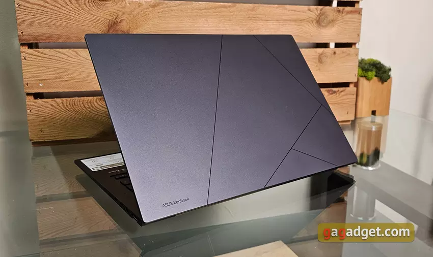 Das Notebook hat Abmessungen von 321,8 x 225,6 x 16,9 mm und wiegt 1,56 kg. Ja, es gibt leichtere und kompaktere Modelle, aber es lohnt sich, daran zu denken, dass in einigen Konfigurationen ein Intel Core H-Series Prozessor der 13. Das Notebook hat ein schönes Aussehen und schöne Materialien, aber der obere Deckel ist gebrandet. Wie die meisten aktuellen Modelle der Reihe erfüllt auch das ASUS Zenbook 14X OLED die Anforderungen des US-Militärstandards MIL-STD-810H und kann theoretisch auch härteren Einsatzbedingungen standhalten.
