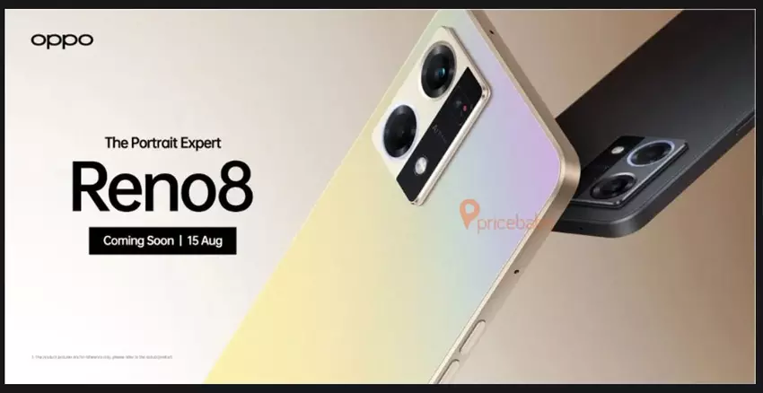 Indische Veröffentlichung Pricebaba bekam die offizielle Presse Renderings des Smartphones OPPO Reno 8 4G.