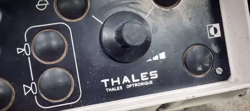 Das Thales-Logo ist auf der zerlegten Luftkampffahrzeugausrüstung angegeben