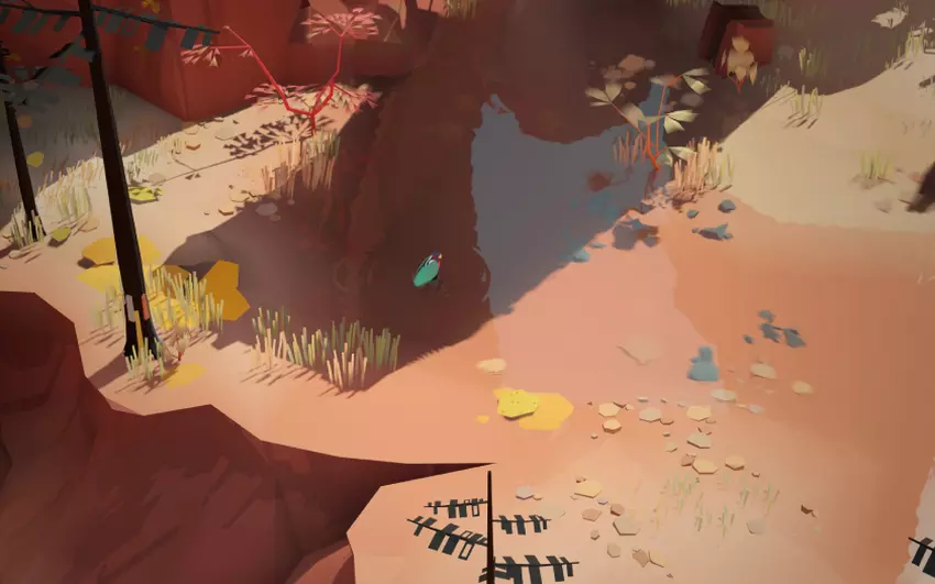 Der Spielablauf basiert auf den Kugeln, die der Käfer auf seinem Rücken trägt. Es gibt 4 Kugeln im Spiel, aber um nicht alle Überraschungen zu verraten, werde ich dir nur von den ersten beiden erzählen. Die orangefarbene Kugel ist die erste, die gefunden werden muss. Sie öffnet den Zugang zur sandigen Welt, und wenn wir sie auf dem Rücken tragen, schafft sie eine Verbindung zwischen speziellen Brücken, um zu einem anderen Teil des Ortes zu gelangen. Mit der grünen Kugel kann man eine Welt voller Seen und Bäume betreten. Wenn du mit einer grünen Kugel auf dem Rücken gehst, kannst du mit ihr spezielle Stangen hoch- oder runterfahren, was dir ebenfalls hilft, dich durch den Ort zu bewegen.