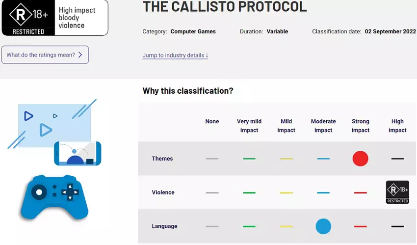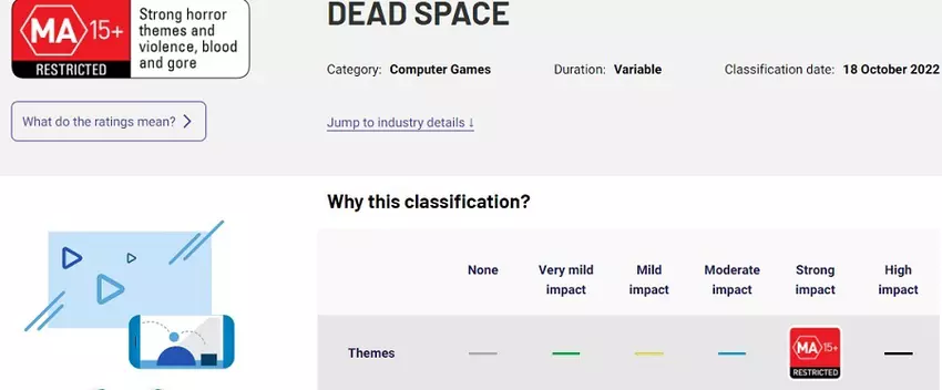 Das aktualisierte Spiel über die Missgeschicke von Isaac Clarke wurde mit MA (15+) eingestuft, während Glen Schofields neues Spiel, The Callisto Protocol, als gewalttätiger und gruseliger eingestuft wurde, da es mit R (18+) bewertet wurde.