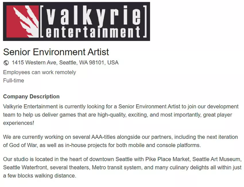 Auf der internen Seite des Sony-Studios Valkyrie Entertainment sind einige interessante Stellenausschreibungen aufgetaucht, aus deren Beschreibung hervorgeht, dass das Unternehmen an der Entwicklung des nächsten Teils von God of War beteiligt ist.