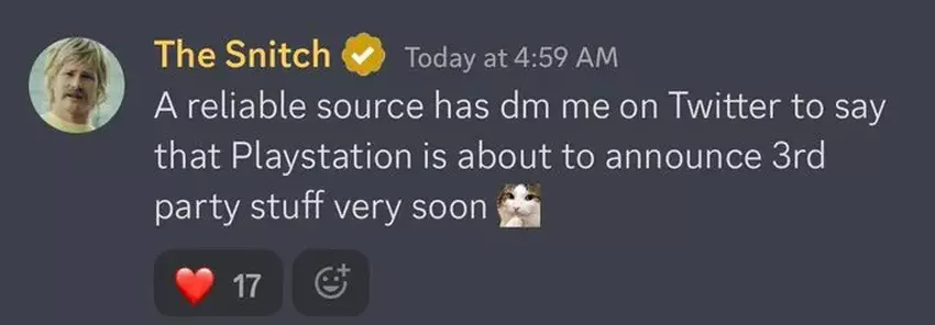 "Eine zuverlässige Quelle hat mich darüber informiert, dass PlayStation bald Spiele von Partnern ankündigen wird."