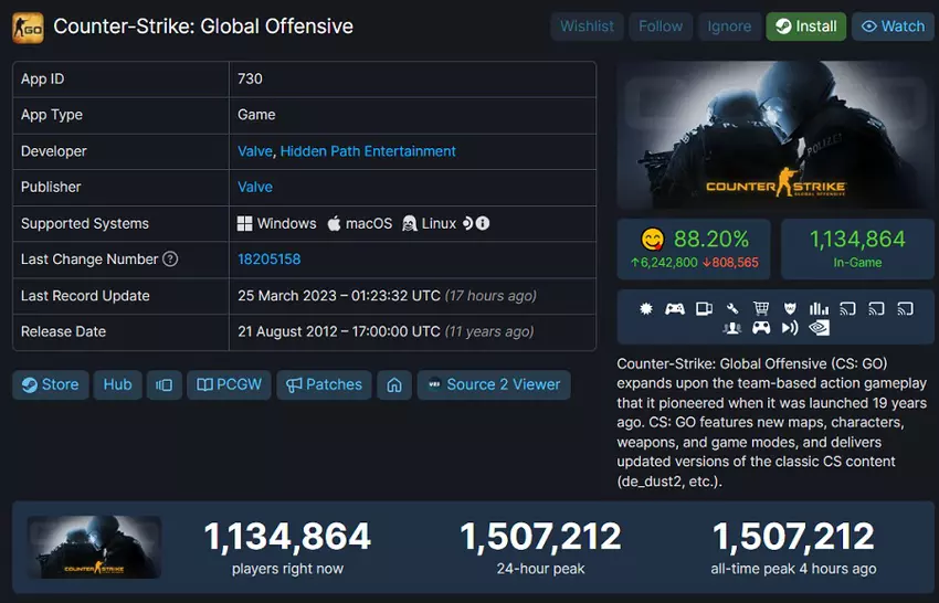 Laut den Statistiken von SteamDB hatte der Online-Shooter von Valve mehr als 1,5 Millionen Nutzer auf einmal!