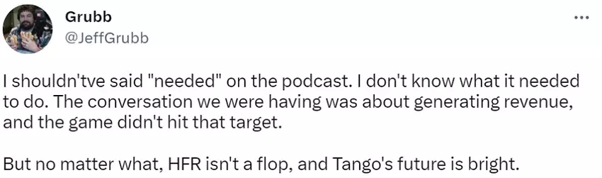 Grubb seinerseits twitterte, dass seine Worte etwas unüberlegt waren. Er hat sich entweder entschuldigt oder versucht, das Thema zu wechseln, steht aber zu der Tatsache, dass "das Spiel nicht die gewünschten Einnahmen gebracht hat".