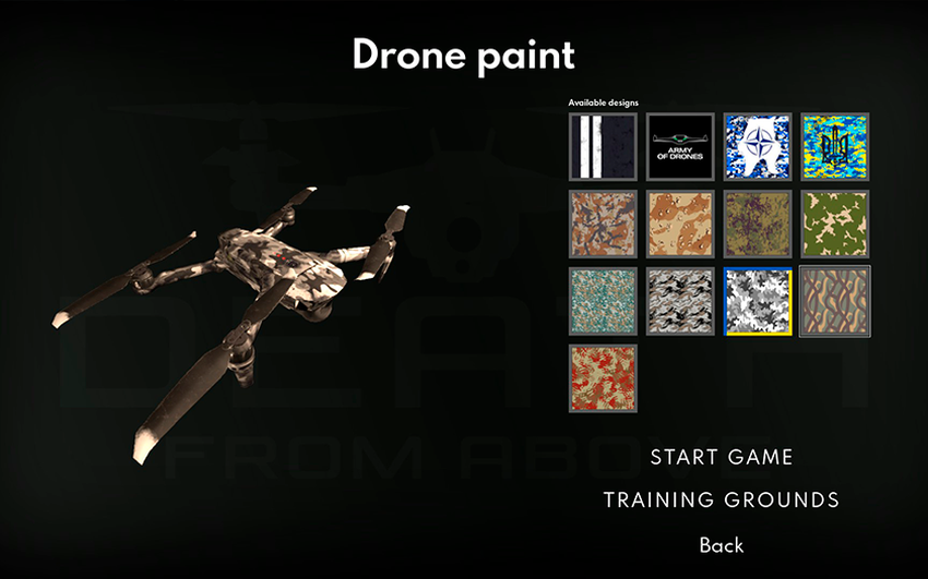 Sie können auch einen Skin für Ihre Drohne wählen, bevor Sie eine Mission starten. Eine Lappalie, aber interessant.