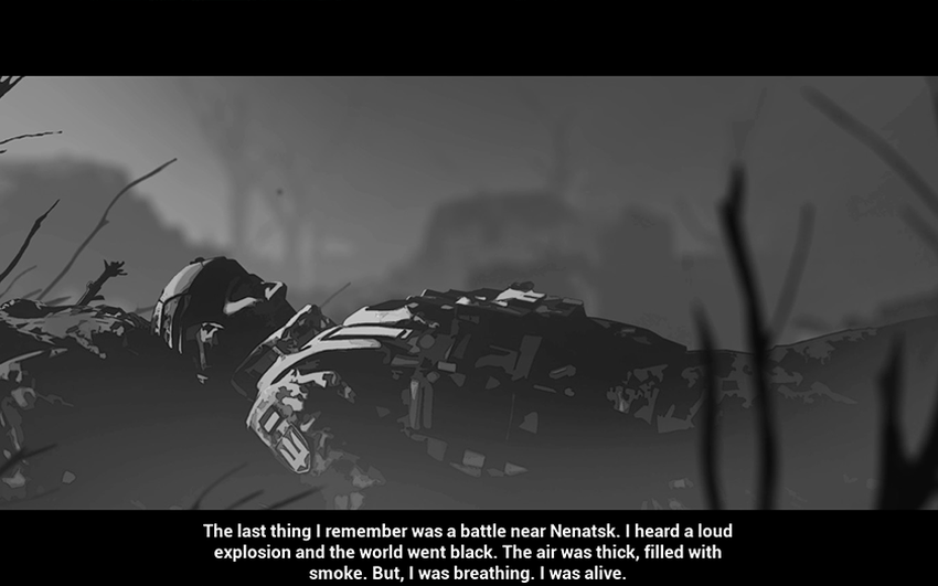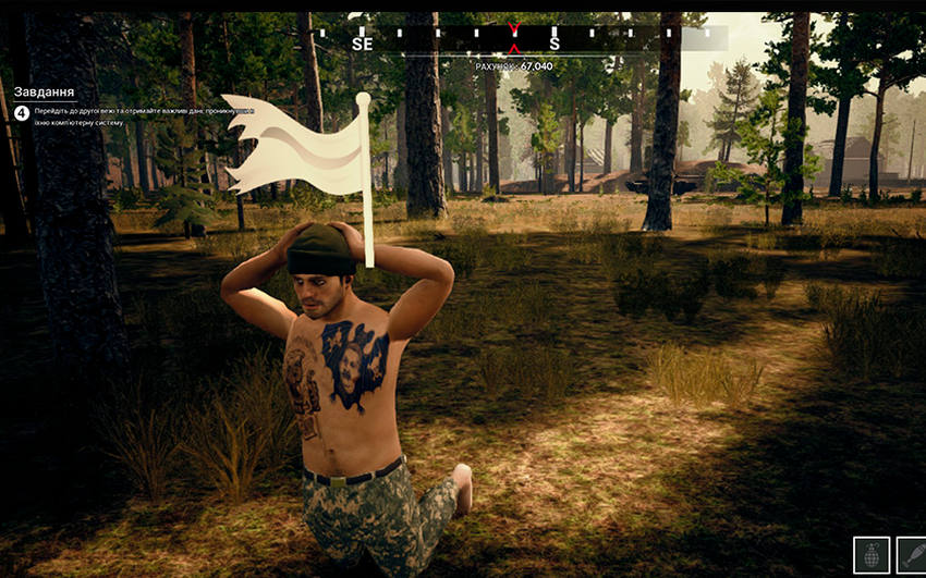 Die Handlung dauert nur eine Minute und wird in den Illustrationen beschrieben, die beim Start des Spiels erscheinen. Um Spoiler zu vermeiden, werde ich daher das Hauptereignis beschreiben. Zu stimmungsvoller Musik wird eine Aufnahme eines namenlosen ukrainischen Kämpfers gezeigt, der auf dem Schlachtfeld in der Nähe von Nenatsk liegt (was alle Witze über die ukrainische Gegenoffensive treffend beschreibt, die überraschend beginnen wird). Nachdem ihm geholfen wurde, ist er in der Lage, wieder zu kämpfen, und gleichzeitig findet er auch ein Lagerhaus mit einem Dutzend Granaten und einer Drohne (analog zur DJI Mavic 3). Und bevor wir die Hauptaufgabe erfüllen, kommen wir zum Übungsplatz, wo uns alle grundlegenden Mechaniken gezeigt werden, und dann beginnt der Hauptteil des Spiels.