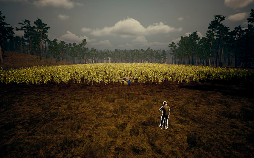 Über die Grafik gibt es nicht viel zu sagen. Die Grafik ist absolut gewöhnlich, wie bei den meisten Indie-Spielen, die mit der Unreal Engine entwickelt wurden. Aber wenn man sie anzieht, sieht sie dank der Vielfalt des Geländes großartig aus. Es gibt Sonnenblumenfelder, einen Bauernhof, ein Viertel mit Häusern und Straßen. Das heißt, das Bild vor Ihren Augen verändert sich ständig. Sie müssen nur noch die Optimierung verbessern, und dieser Aspekt kann gelobt werden. In der Zwischenzeit gebe ich nur ein Plus für die Vielfalt des Waldgeländes im Spiel.