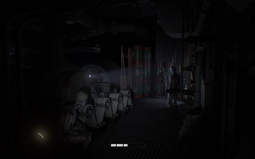 Auch bei der Taschenlampe gibt es Veränderungen. Es gibt 100 Schaufensterpuppen, die auf dem Schiff verteilt sind, und mit einigen von ihnen kann man interagieren. Damit zum Beispiel eine Schaufensterpuppe eine Tür öffnet, damit wir hindurchgehen können, leuchten wir mit einer Taschenlampe auf sie, woraufhin ein Film projiziert wird und die Schaufensterpuppe eine programmierte Aktion ausführt.